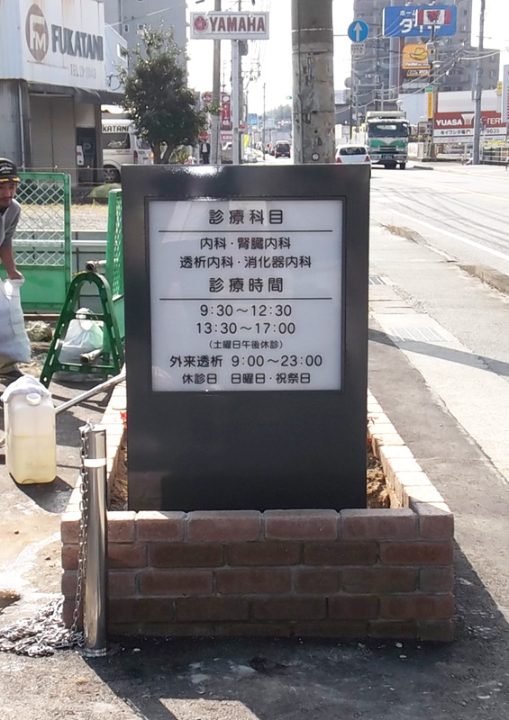 FREE-STANDING SIGNBORAD 自立型看板 敷地内に駐車場の案内や注意事項を掲示させたりする単独設置の看板です。駐車場案内以外にも企業イメージを掲出したりと用途に多様性があります。 [スライドショーを見る>>] 下川歯科医院様 つつみクリニック様 創価学会福岡池田文化会館様 おだ歯科医院様 (株)栗山建設様・ユーミーマンション様2 (株)栗山建設様・ユーミーマンション様 車買取センター カーチス福岡西店様 車買取センター カーチス姫路店様 仔犬販売専門店 チェリーズストーリー様 今井歯科様 自立型サイン 医療法人 松尾内科医院様 内照式自立型サイン ボートピアみやき様 松尾内科医院様 ◄ 1 ... 7 8