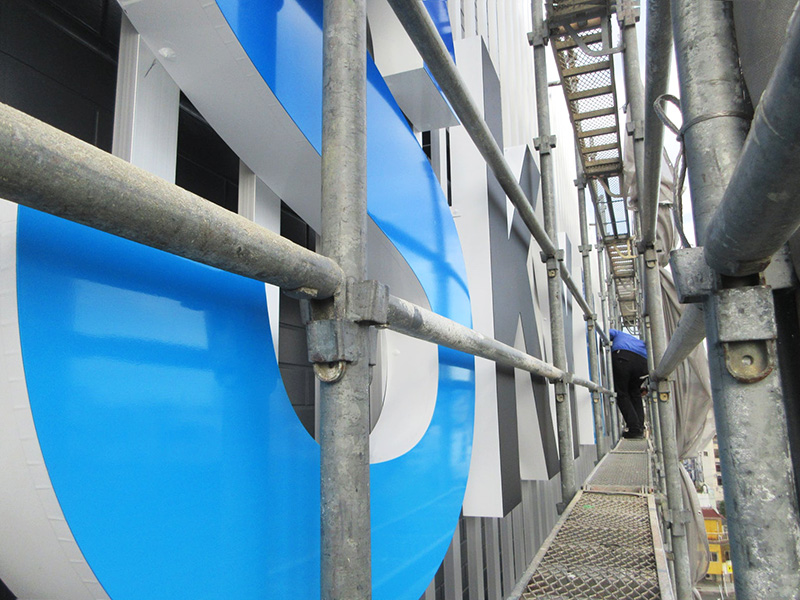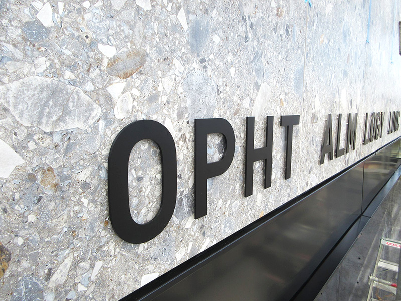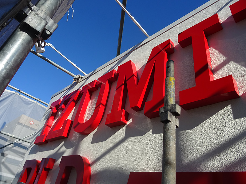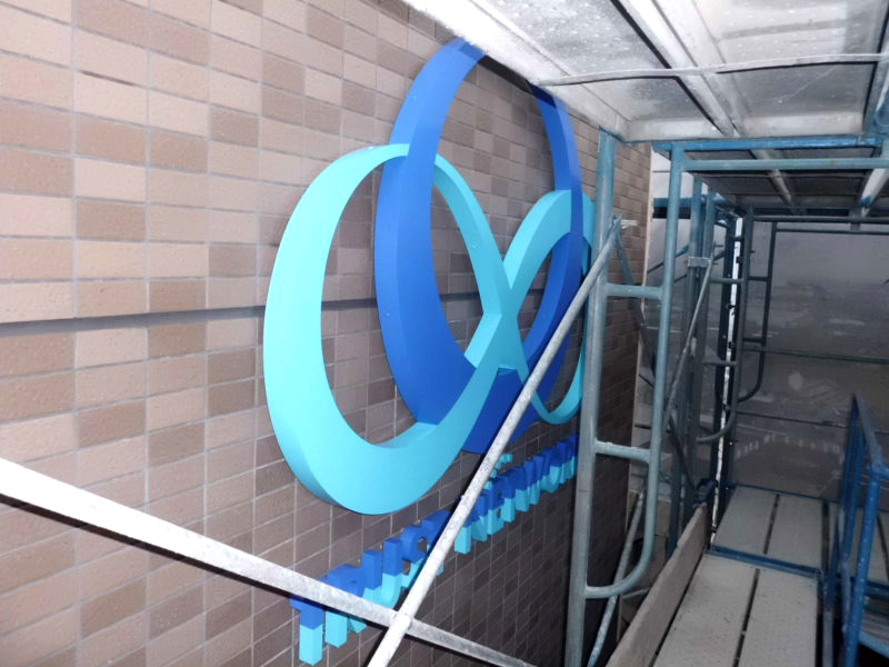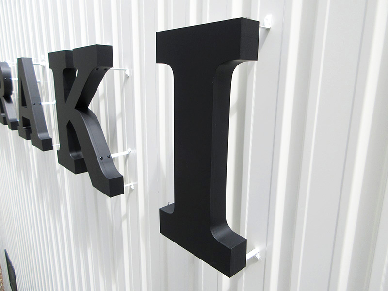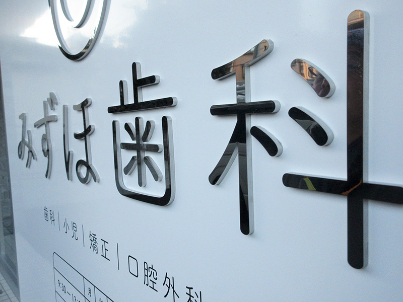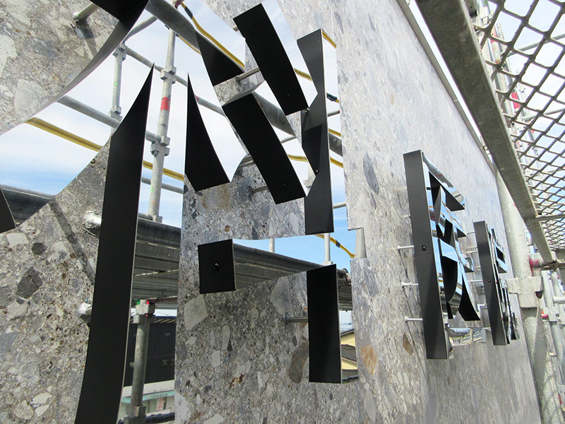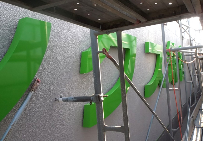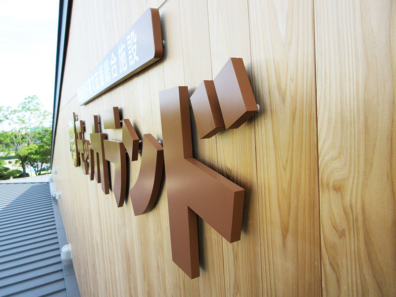 壁面や看板に凸型に加工し、立体的に仕上げます。